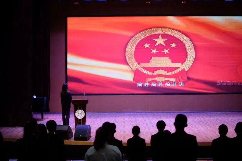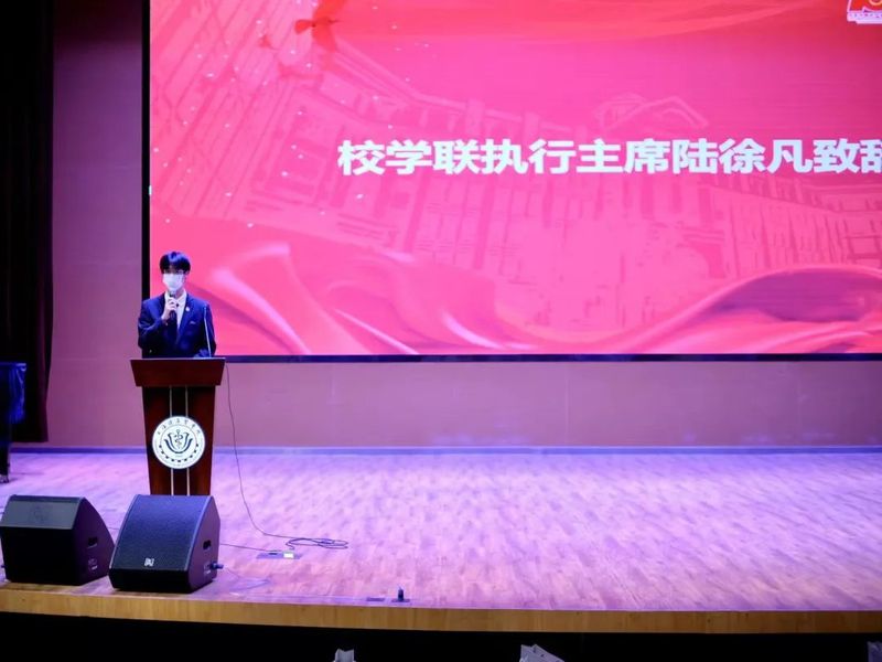奏唱国歌后,校学联执行主席陆徐凡同学致辞。对于本次大会的召开,他首先表示热烈的祝贺,接着陆徐凡同学肯定了我院学生会在这一年里的努力与成就,并提出了学生会在一个学院里的重要作用。最后他相信在学生会全体成员会在学院和团总支的支持与指导下共同努力,一定能呈现出勃勃生机与活力,成为学校一道亮丽的风景。