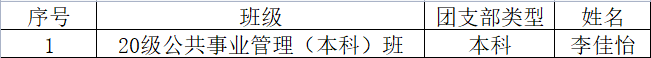 根据校团委有关文件,2022年下半年健康与公共卫生学院团总支新发展团员名额为本科1名。学院团总支在充分发挥民主,广泛征求团员青年意见的基础上,听取各方意见,在参考青年大学习、志愿者时长、社会实践等的基础上,审核新发展团员候选人材料准确性,结合候选人答辩工作,学院评审小组投票结果。评选出李佳怡同学为新发展团员,现将情况公示如下: