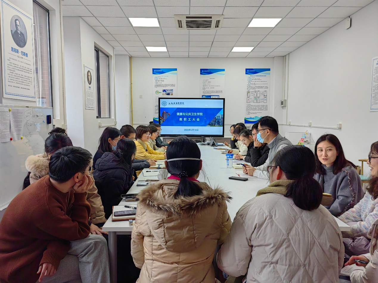 为深入贯彻落实党的二十大精神,进一步凝心聚力,加快构建新发展格局,助力推进学校“十四五”规划全面实施和高水平地方大学建设,实现学校各项事业高质量发展,2月10日下午,健康与公共卫生学院召开全体教职工大会暨“开学第一课”专题教育,吹响了新学期的集结号。会议主要分为三个部分组成,一是学习师德师风文件精神,二是2023年度学院主要工作任务进行安排部署和动员,三是凝心聚力,充分了解教职工思想动态,会议由党总支书记顾斐雯主持。