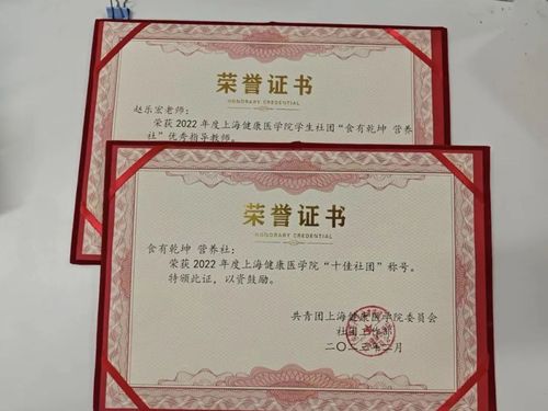 食有乾坤·营养社在上海健康医学院2022年度社团评选中荣获2022年十佳优秀社团。指导老师赵乐宏老师荣获优秀指导老师奖。