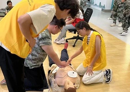 实操教学由红十字急救员们围绕快速判断、快速施救等方面,利用模拟人进行现场演示心肺复苏(CPR)的基本原则、注意事项、操作步骤和自动体外除颤仪(AED)的使用流程。