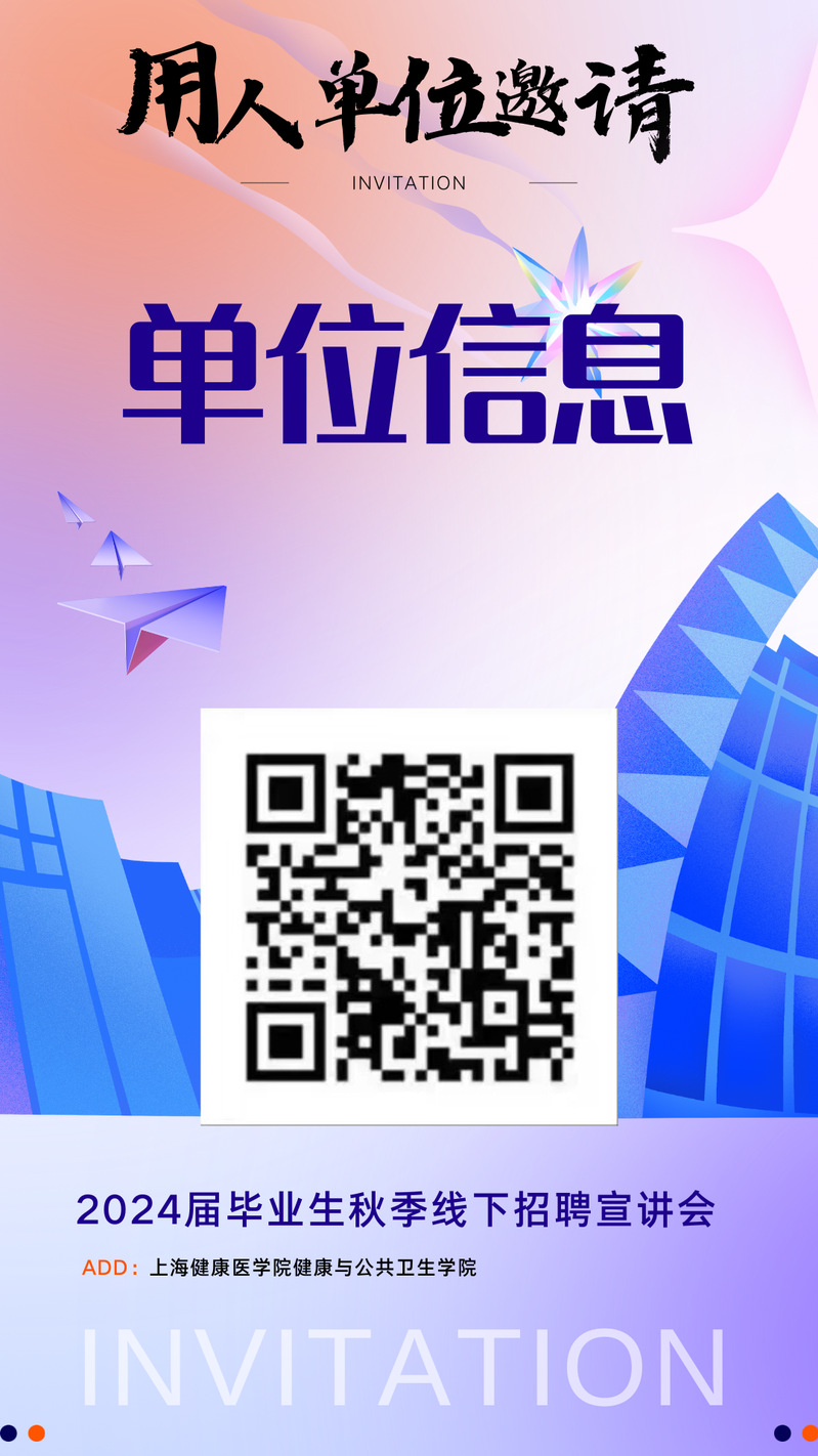 欢迎各用人单位来上海健康医学院健康与公共卫生学院宣讲,希望你们能在此次宣讲会上有所收获,也希望能展现各单位的特点与优势,快来报名参加吧,我们在这里等着你们!