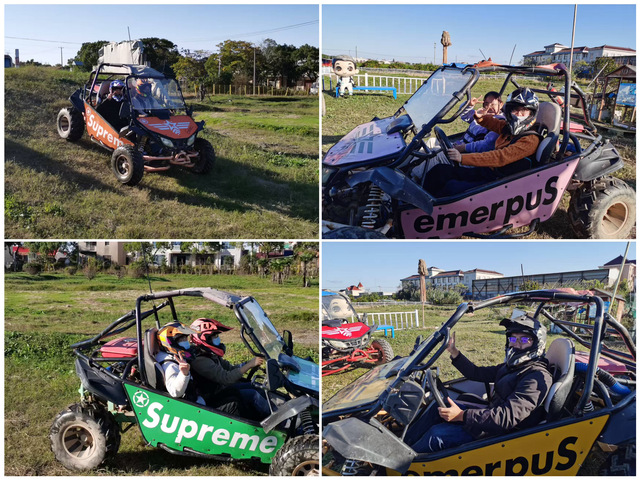 横沙岛基本处于原生自然状态,生态环境优良。采摘园内橘树硕果累累,金黄的果实挂满枝头。老师们穿梭于果树间,有的在挑选饱满的柑橘,有的研究如何辨别甜度,采摘园里洋溢着秋收的快乐。采摘后,老师们来到越野卡丁车基地,体验风驰电掣地竞速。引擎轰鸣声中,平日伏案工作的老师们化身“赛道车手”,团队协作与竞技精神在互动中升温,大家都找回了学生时代的热血。