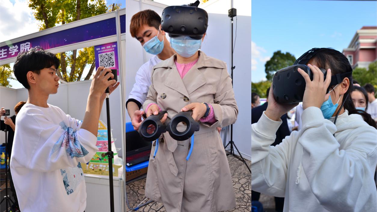 “小小营养师”则利用VR虚拟仿真技术,帮助现场的老师们和同学们分析日常饮食,给出合理的膳食方案,引导师生健康饮食。