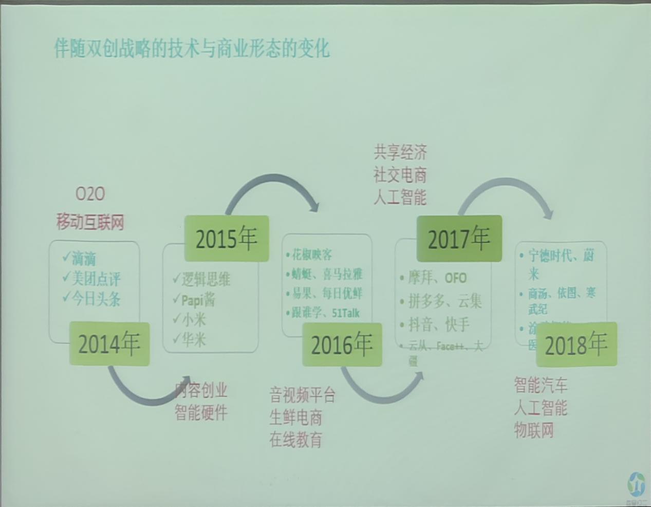 创新创业并不只是同学们心中的一份理想,更是当下国家发展的战略之一。在这个瞬息万变的时代,只有迎接变化,拥抱创新,才能长久地发展下去。伴随双创战略的技术与商业形态的变化,热点也一直改变。