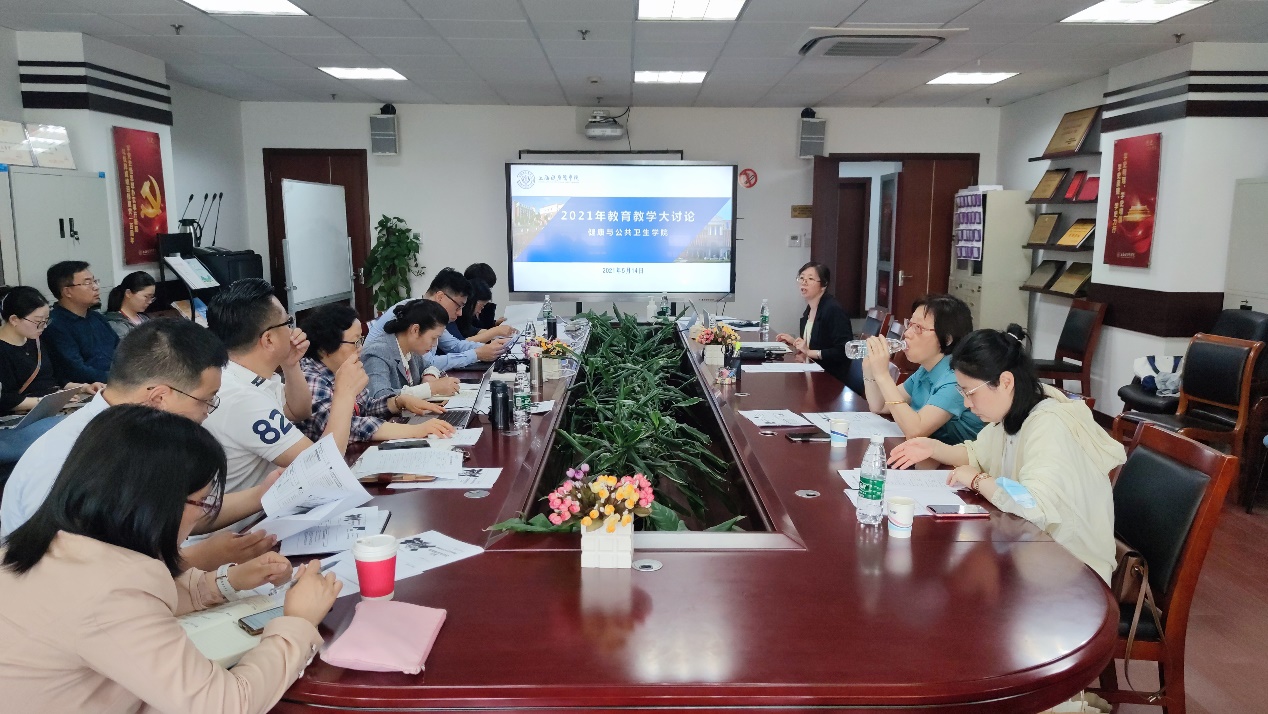 根据学校《关于开展2021年上海健康医学院教育教学大讨论实施方案》的要求,进一步深化教育教学改革,更新教育理念,准确把握本科教育教学规律,引导广大教师以良好的精神状态参与贯彻落实思政工作的各项要求和本科建设各项工作,助推“十四五”专业建设与人才培养专项发展规划开好局、起好步,全力迎接本科合格评估工作,健康与公共卫生学院2021年5月14日开展了院级教育教学大讨论。此次讨论由教务处王莉处长主持,会议邀请了上海交通大学原教务处长富冀枫教授和交通大学公共卫生学院教务蒋雪芹主任两位专家指导,学院领导和骨干教师参加了此次讨论。