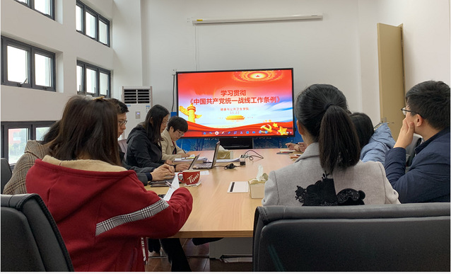 11月22日上午,健康与公共卫生学院在新南苑4号楼303室,组织学习《中国共产党统一战线工作条例》。学院党政领导班子、全体党员参加了会议,专题学习会由学院党总支陈泓书记主持。