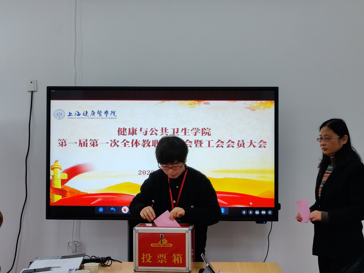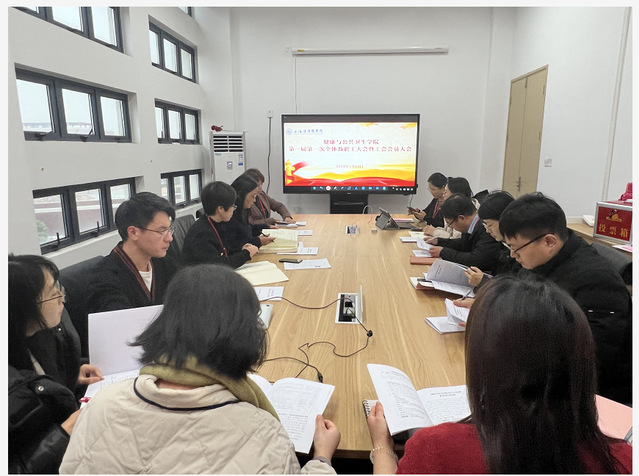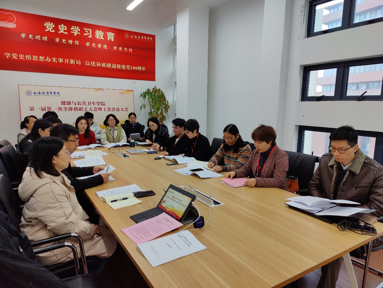 1月13日,健康与公共卫生学院第一届第一次全体教职工大会暨工会会员大会在新南苑4号楼303会议室举行,健康与公共卫生学院全体教职工(工会会员)出席,校工会常务副主席凌文惠同志作为特邀嘉宾出席会议,挂职副院长陈新列席会议。
