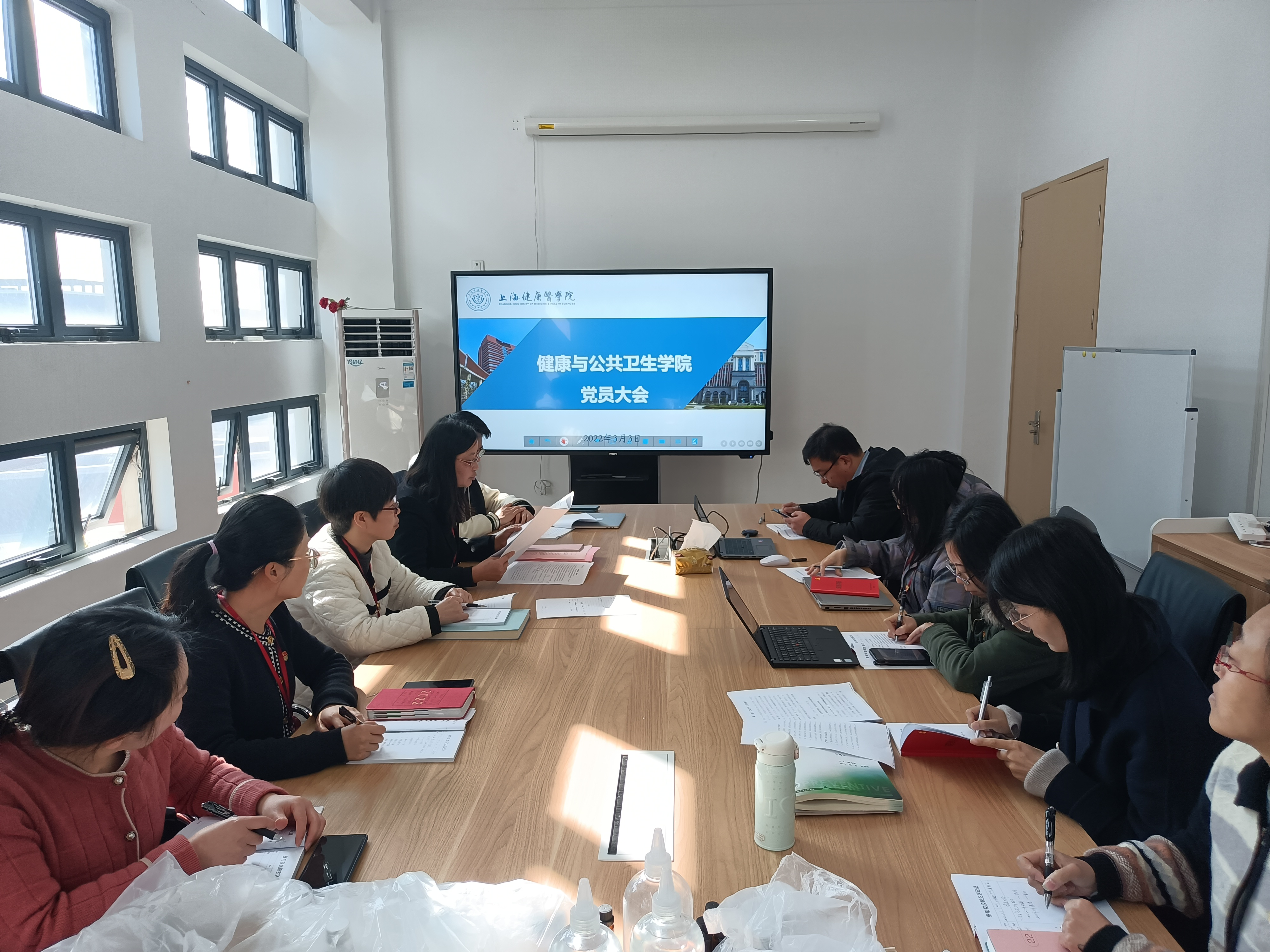 2022年3月7日上午,健康与公共卫生学院党总支党员大会在303会议室召开,专题学习学校工作报告。会议由健康与公共卫生学院党总支书记陈泓主持,全体党员参加。