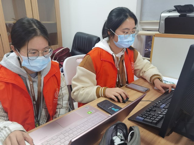 简洁的培训后,同学们立即全身心投入各自的岗位工作。志愿者们被分为两组:电话流行病调查组和密接防控组。电话流调组的志愿者们目不转睛地看着电脑上的名单,拨号、接通、问询、登记,大家已经熟练掌握了全套流程。“您好,请问你是xxx先生/女士吗?”“您是否去过xxx?”“希望您配合我们进行流调”。“首先要确认居民的身份,再询问其现居住地在哪,有无去过中高风险地区……,电话排查,说起来简单,但做起来并不容易。作为咨询者,我们不仅要冷静、礼貌地阐述来意和目的,还要仔细地回答群众问题,树立起信任感。”入党积极分子施轶珺表示,参与疫情防控,作为公卫学子义不容辞。