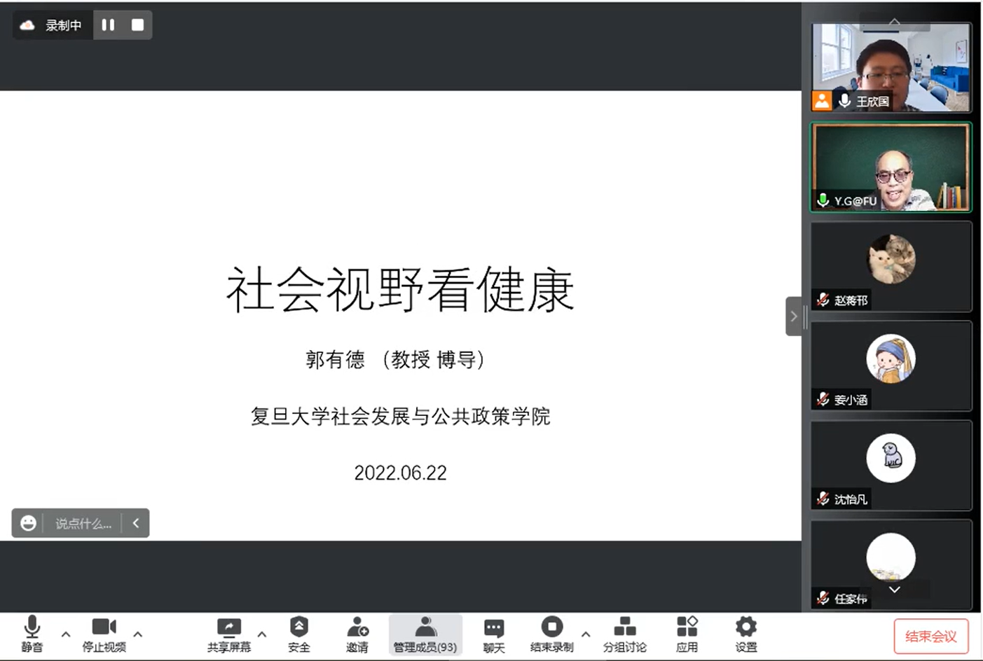 健康是人类永恒的追求,作为诞生于“健康中国”新时代的一所应用技术型本科医学院校,学校定位于“应用型、特色性、国际化”,以为新时代中国特色社会主义健康卫生事业发展培养高素质医学人才为己任。为提升学院教师科研水平,创造条件搭建科研合作平台,拓宽师生的视野, 6221400,健康与公共卫生学院邀请复旦大学社会发展与公共政策学院郭有德教授线上开展学术讲座,2020级、2021级公共事业管理专业本科生,公共事业管理教研室教师等100余人参加了活动。