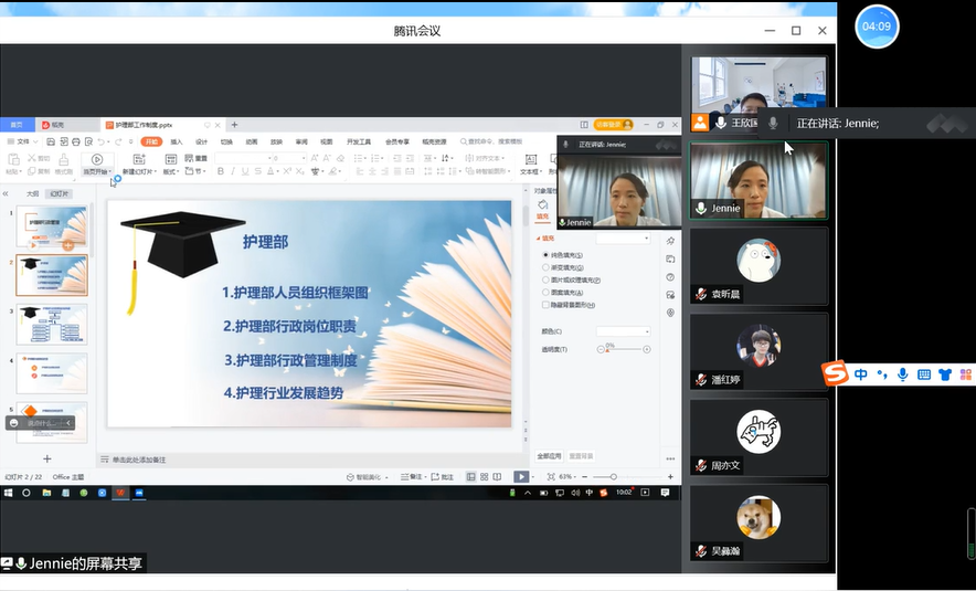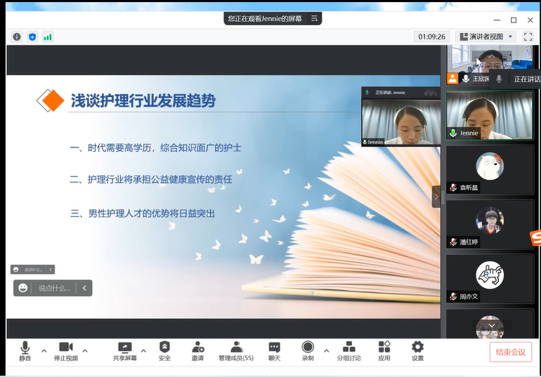 护士是医院中数量做多的专业技术人员,其在疾病诊疗、健康教育、突发公共卫生事件处置中承担着越来越重要的职责,护理管理工作已经成为医院管理的重要内容。为进一步提高师生对医院护理管理的认识,拓展知识面,达到理论联系实际,实践指引理论学习的功效,2022年6月29日上午10:00,健康与公共卫生学院邀请附属赫尔森康复医院(筹)张文丽护师来院讲座,公共事业管理教研室全体教师参加,2020级、2021级公共事业管理专业学生一同出席。