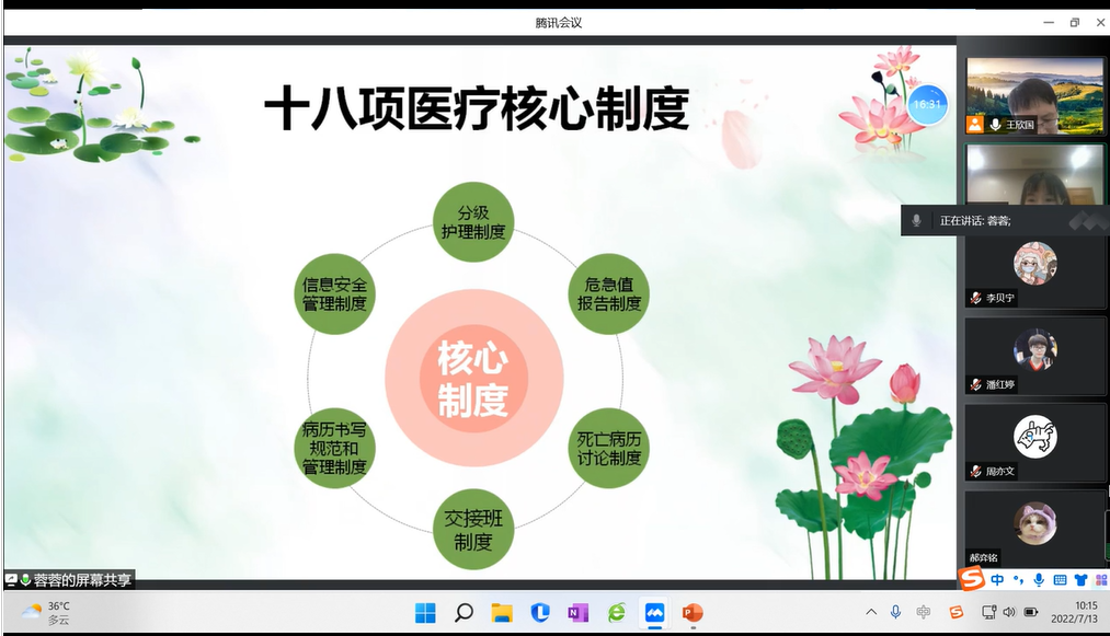 黄蓉科长以浅谈医务部的管理与自身建设为主题,结合医院职能部门的日常工作与一线的临床诊疗工作,主要从规章制度建设、日常工作管理两大方面展开讲座。